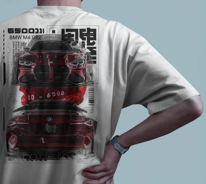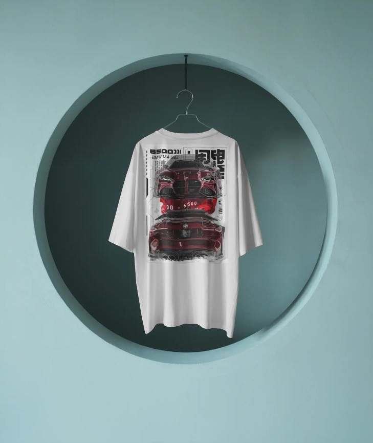 Oversized BMW M4 G82 Performance Tee – Black 🖤 & White ⚪ Edition